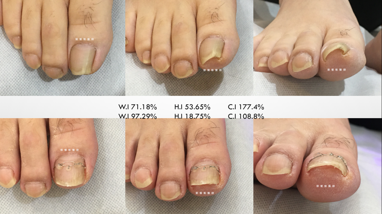 因為指甲是活的,不斷生長後矯正器也會隨之往前,所以每1.5-2個月必須重新把矯正器往後挪,也就是所謂的回診調整,通常需要至少3次的治療,效果會比較顯著,治療效果則因個案情況不同而異。